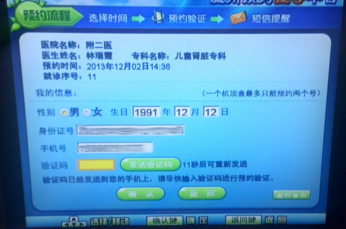 1.手机第一次预约时需要输入手机验证码。
