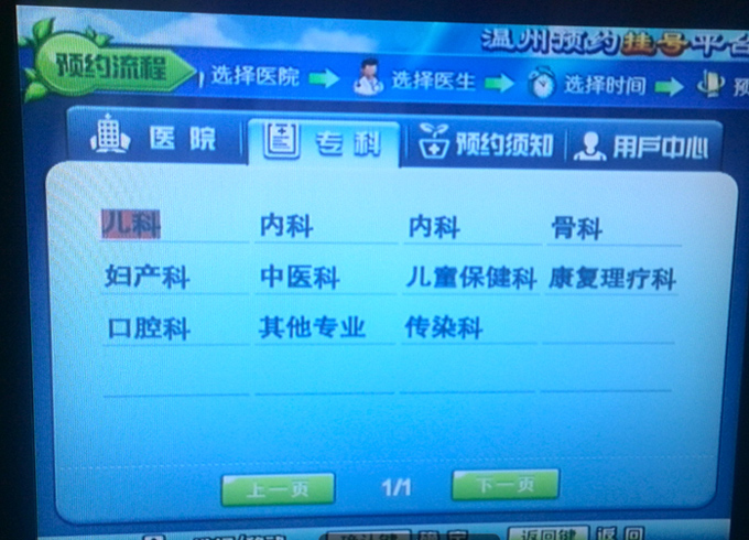 3)选择医院科室