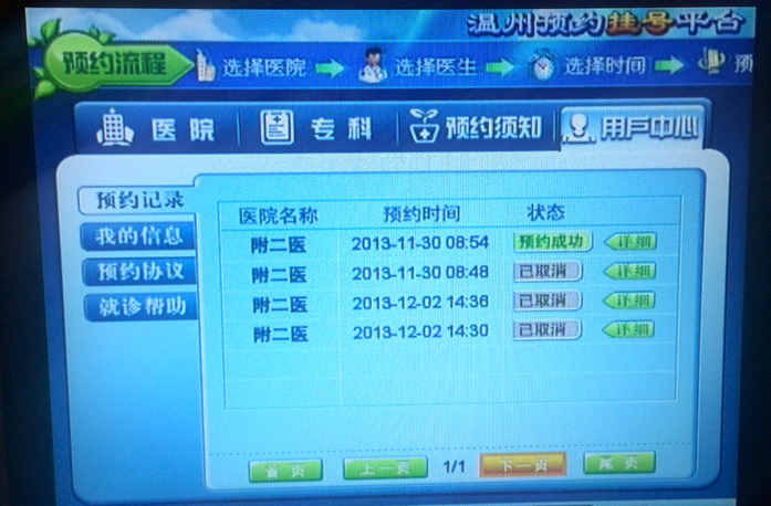 通过用户中心,查看预约记录
